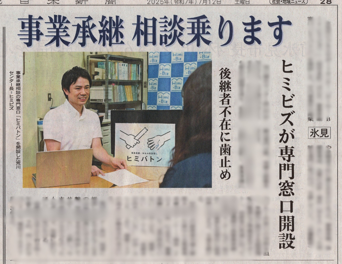 【メディア掲載】氷見ブルーPJ、事業承継窓口「ヒミバトン」が各種メディアで紹介されました!