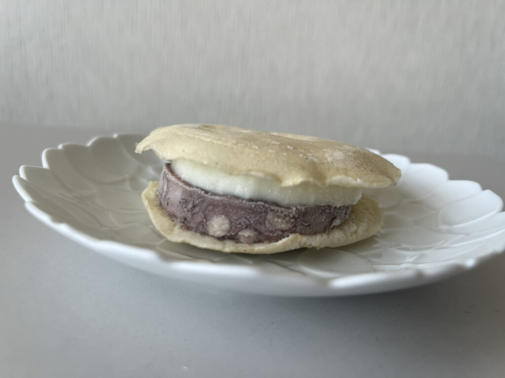 結果、従来のきんつば生地を通常より薄く焼き上げ、中にはきんつば同様に北海道産高級小豆「雅」を使った葛餅と、葛と寒天で作られた溶けないバニラアイスクリームをたっぷり入れた、新感覚アイスを作り上げました。
