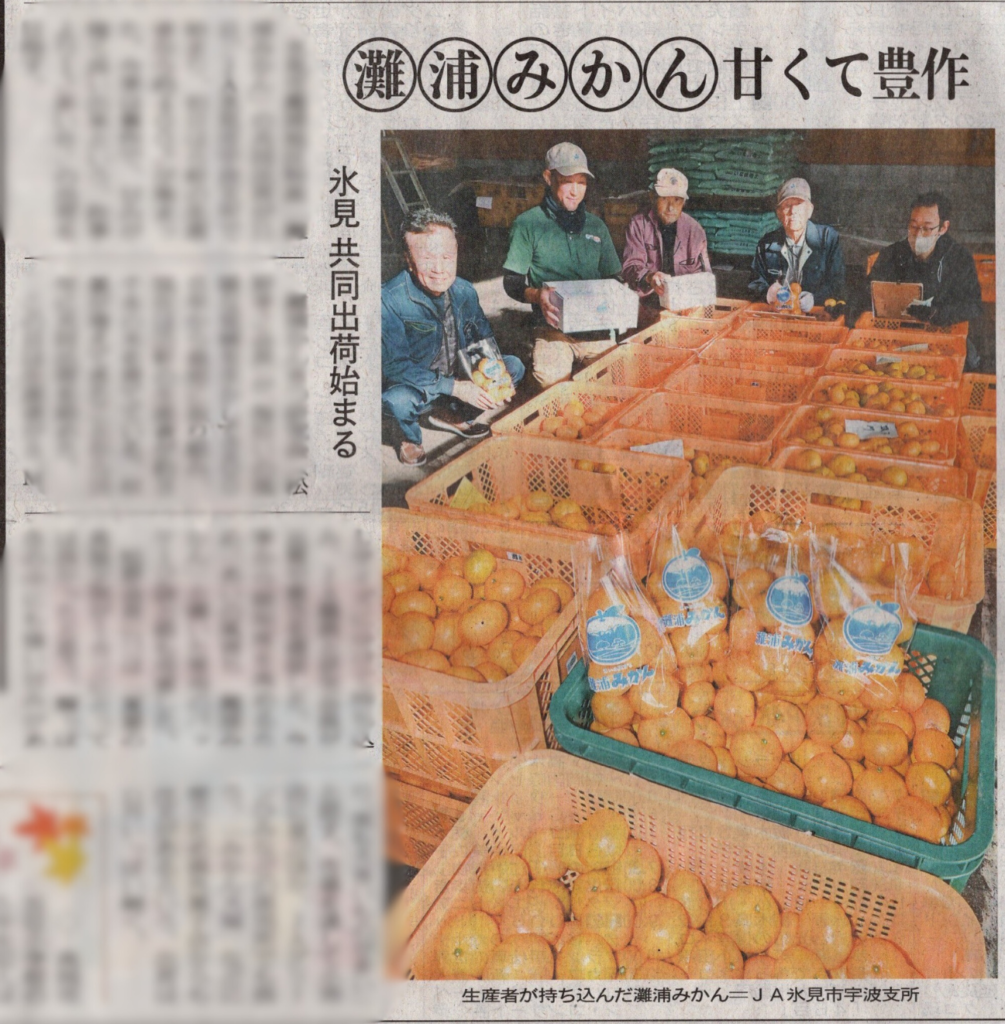 灘浦地区は、対馬暖流と寒流がぶつかる影響で冬季の気温が県平均よりも1〜2度高く、比較的温暖で雪が少ないことからみかんが育つのだそう。