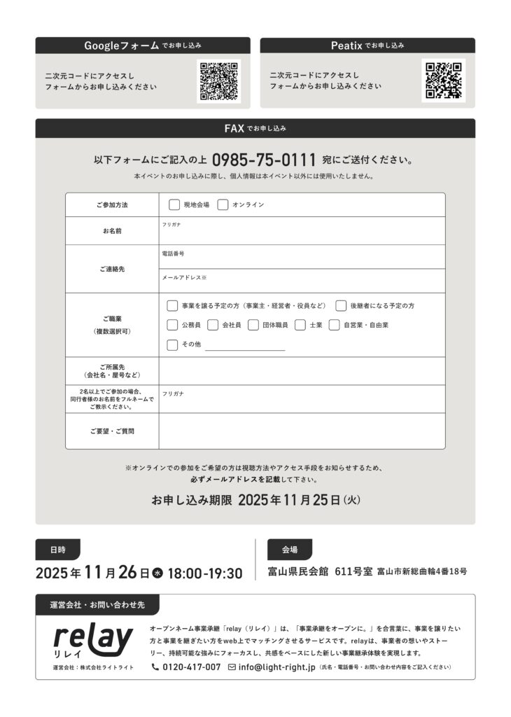 詳細はこちら:https://www.pref.toyama.jp/1300/event/20251126zigyousyoukeiseminar.html
