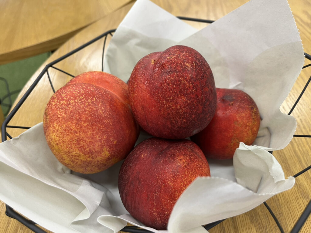 ネクタリンは、モモとスモモをかけあわせた果物で、甘酸っぱい味わいが特徴の果物です。