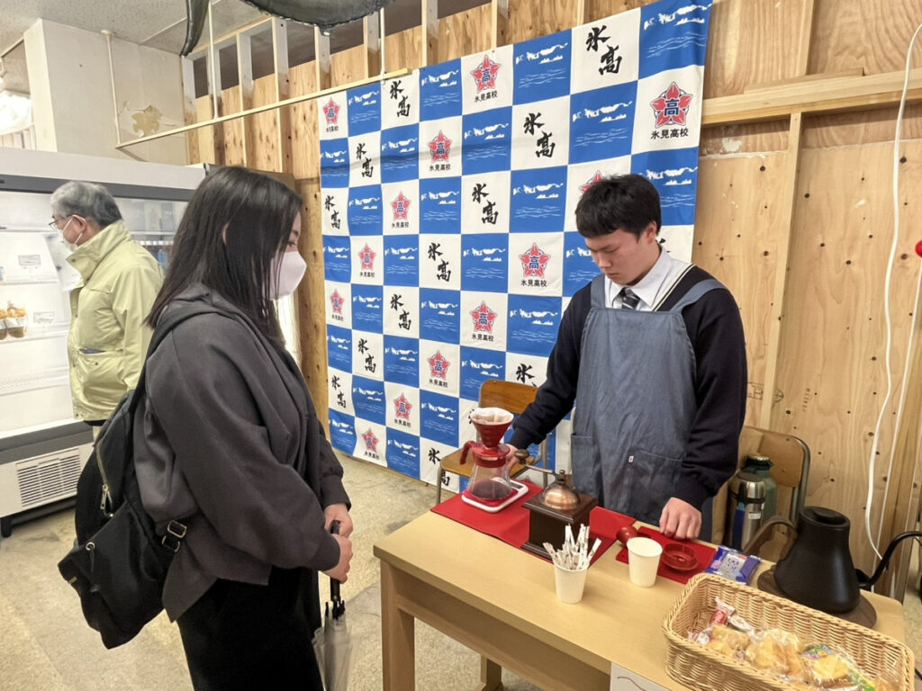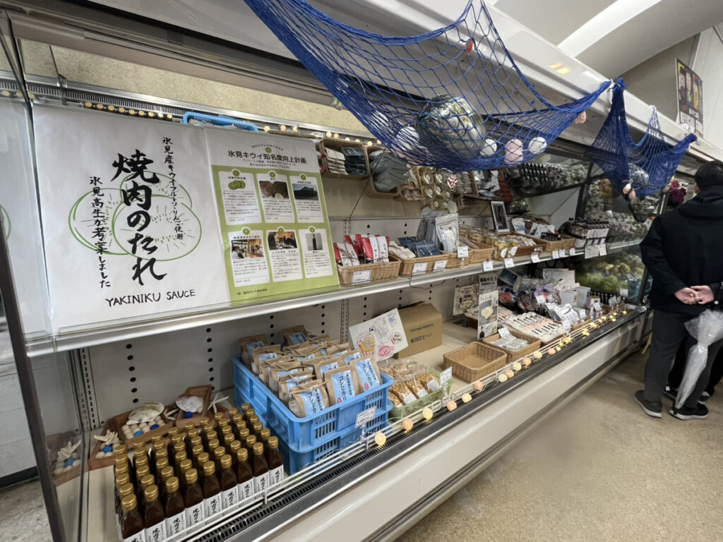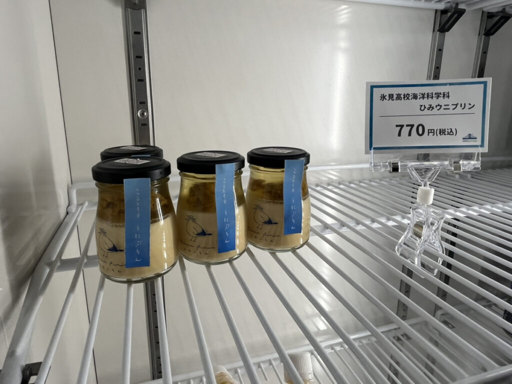 農業科学科が作ったお米や野菜、海洋科学科が作った海産物加工品、HIMI学で開発された氷見産キウイを使った焼肉のたれ、駆除ウニを使った「氷見ウニプリン」、生徒が選んだ地元企業商品など、計60種類の商品が並びました。