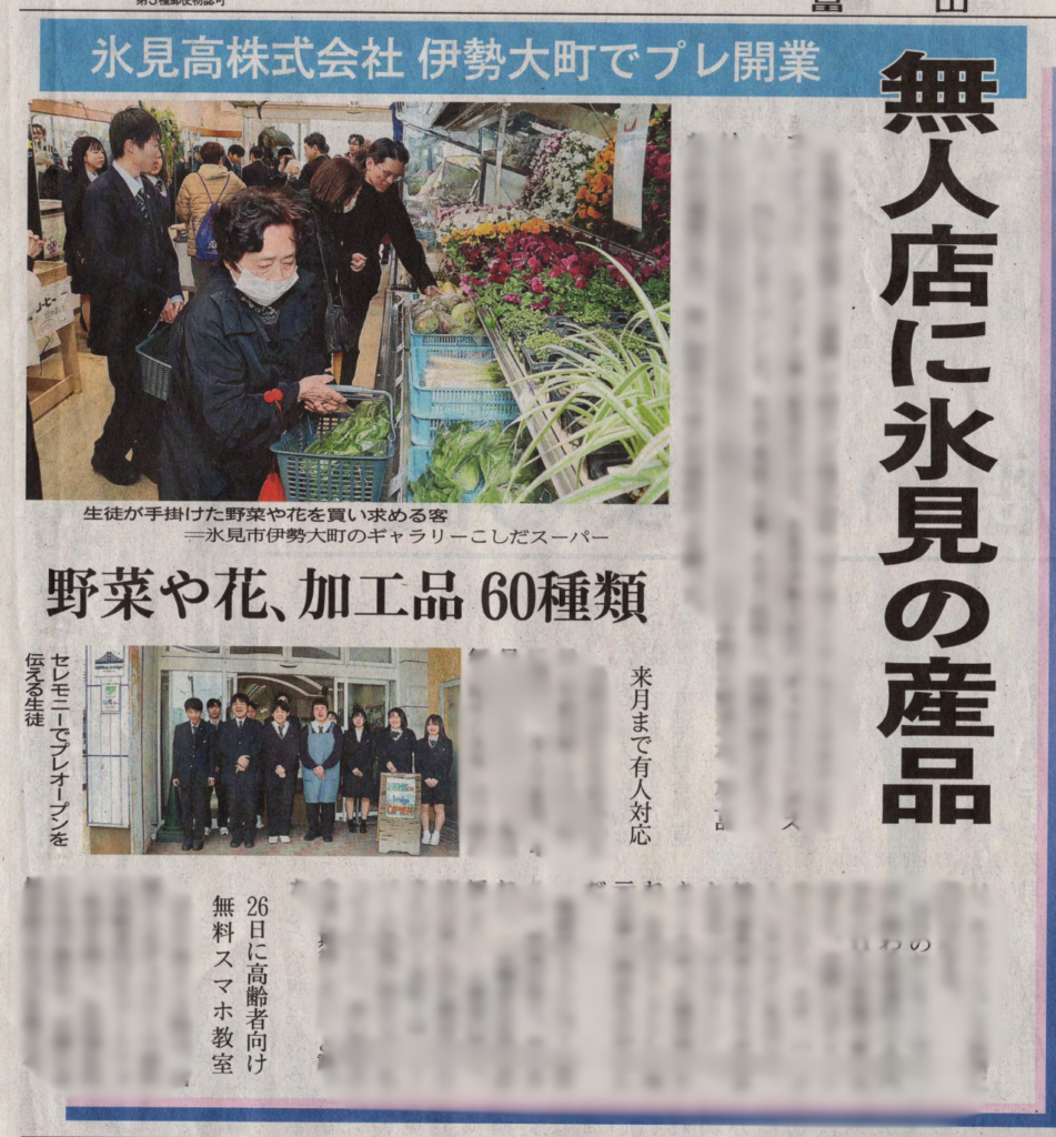 \【メディア掲載】氷見高校が若手経営者と株式会社設立。無人販売店プレオープン!(県立氷見高校)/
