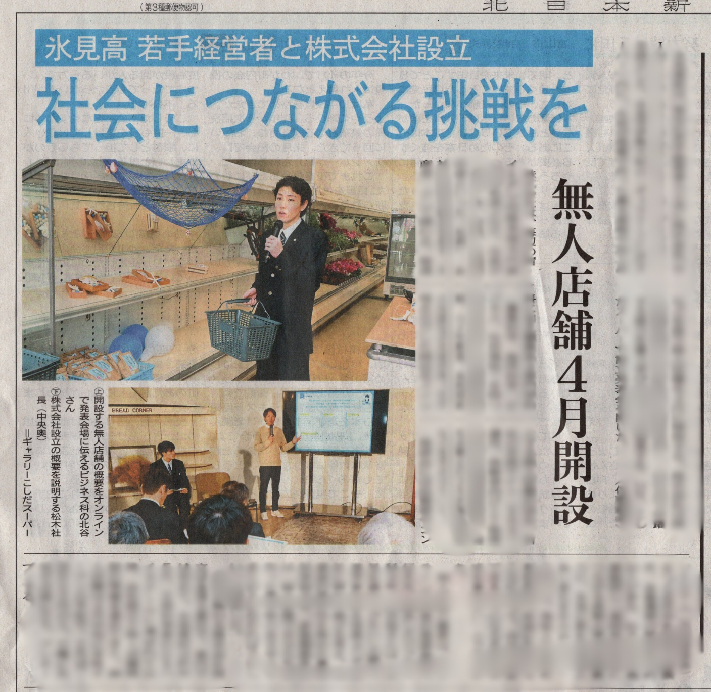 【メディア掲載】氷見高校が若手経営者と株式会社設立。無人販売店プレオープン!(県立氷見高校)