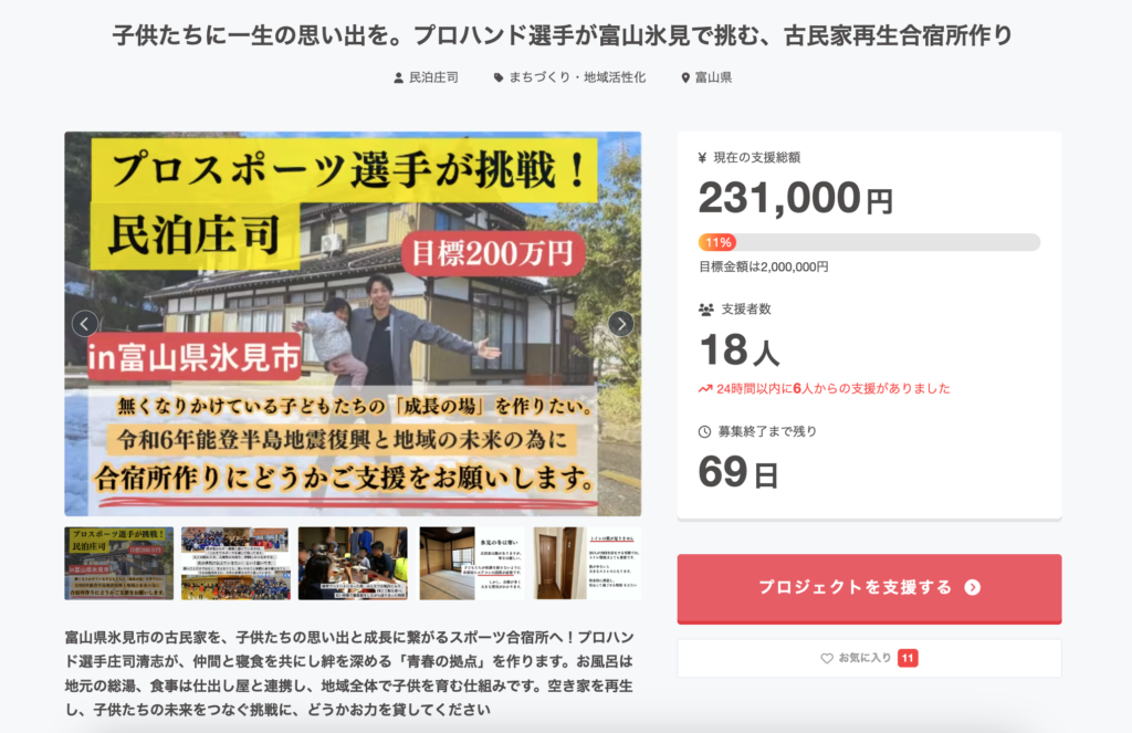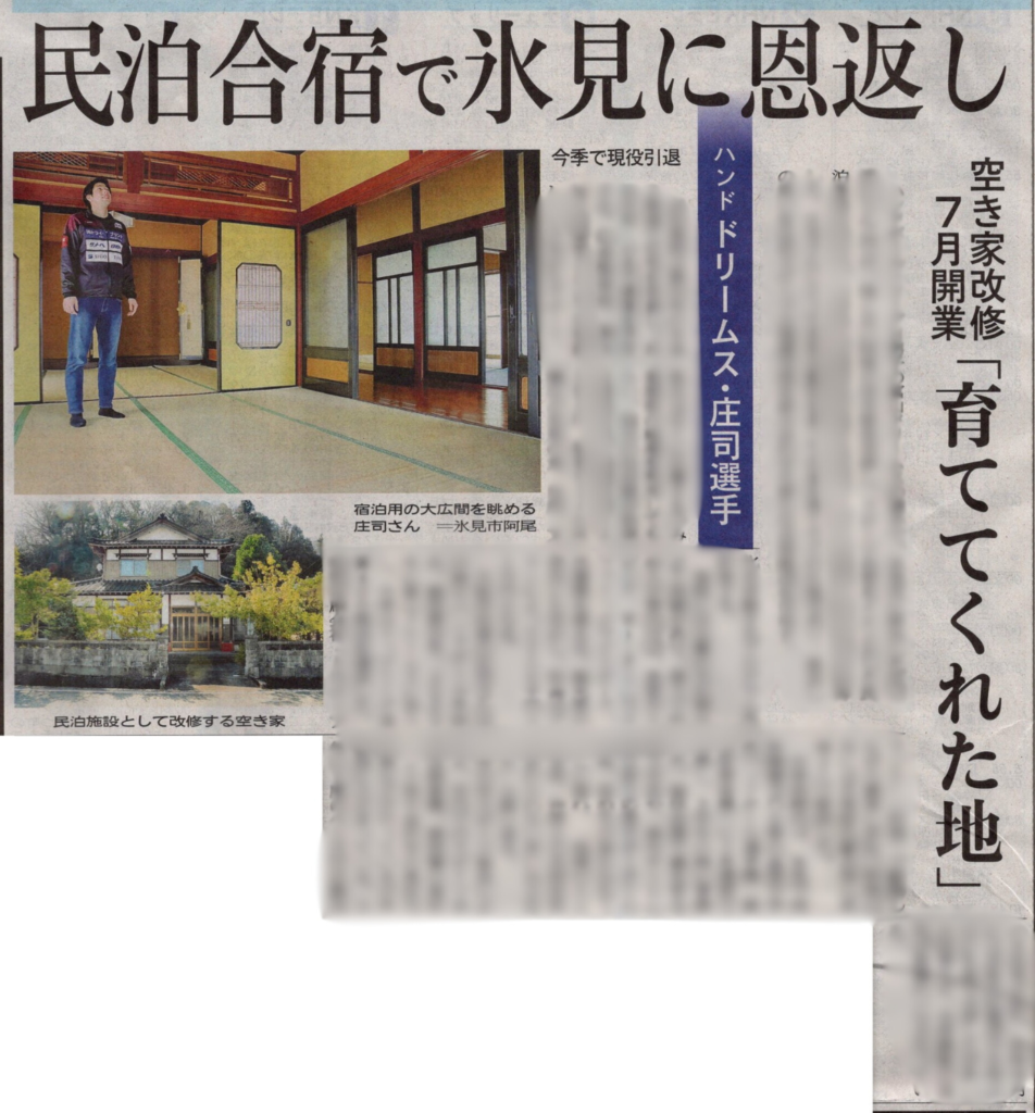 Himi-Bizにお越しいただいている、ハンドボールチーム「富山ドリームス」所属の庄司選手が、築50年の空き家を再生したスポーツ合宿型民泊「民泊庄司」開設に向けてクラウドファンディングに挑戦されています🔥