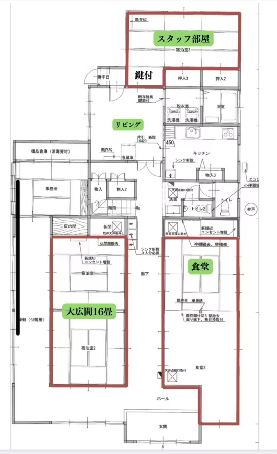 ①スポーツ合宿に特化した古民家型の宿泊施設