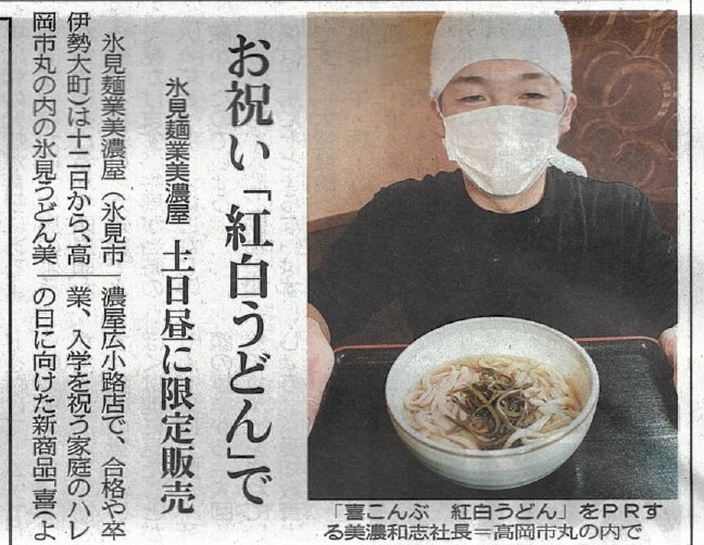 \昆布大好き富山県民向け!ハレの日用うどん「喜こんぶ紅白うどん」(㈲氷見麺業美濃屋さん)/ Himi-Bizに相談に来られている、㈲氷見麺業美濃屋さんが、合格祝いや卒業祝いなどのハレの日専用うどん「喜こんぶ 紅白うどん」[…続きを読む]