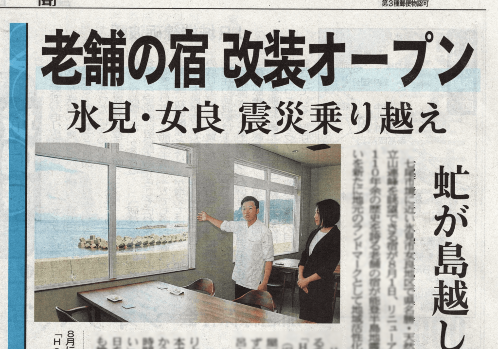 \【メディア掲載】明治時代から続く宿が震災を乗り越え、リニューアルオープン!(Hashimotoyaさん)/ Himi-Bizにお越しいただいているHashimotoya(旧:料理旅館はしもと屋)さんが、宿を建て替え、8[…続きを読む]